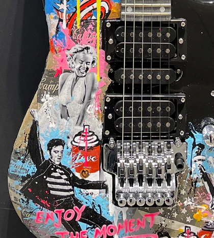 'Enjoy The Moment - Elvis (Guitar)' isn’t merely an artwork; it’s an experience—a testament to Yuvi's capability to blend traditional techniques with digital innovation. His tactile approach invites viewers not just to observe but to feel every strummed emotion embedded within this captivating piece.
